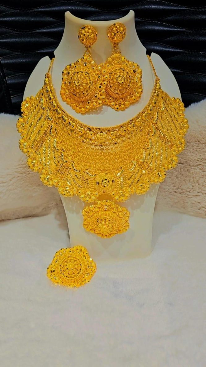 - Package Content: 1 Necklace + 1 Pair of Earrings + 1 finger ring+ Set of bangle